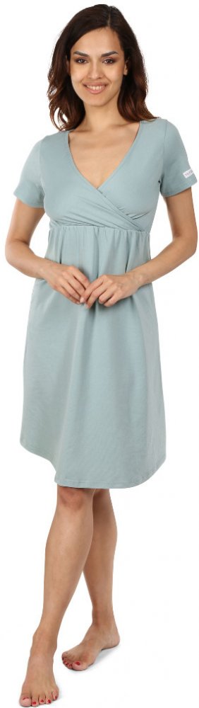 Dámská těhotenská a kojící košilka Moniel Pastel mintová je noční košilka a pohodlné domácí šaty v jednom! Je to multifunkční kousek oblečení, který vám vydrží po celou dobu těhotenství, kojení a mateřství.