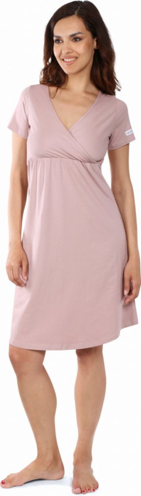 Dámská těhotenská a kojící košilka Moniel Pastel růžová je noční košilka a pohodlné domácí šaty v jednom! Je to multifunkční kousek oblečení, který vám vydrží po celou dobu těhotenství, kojení a mateřství.