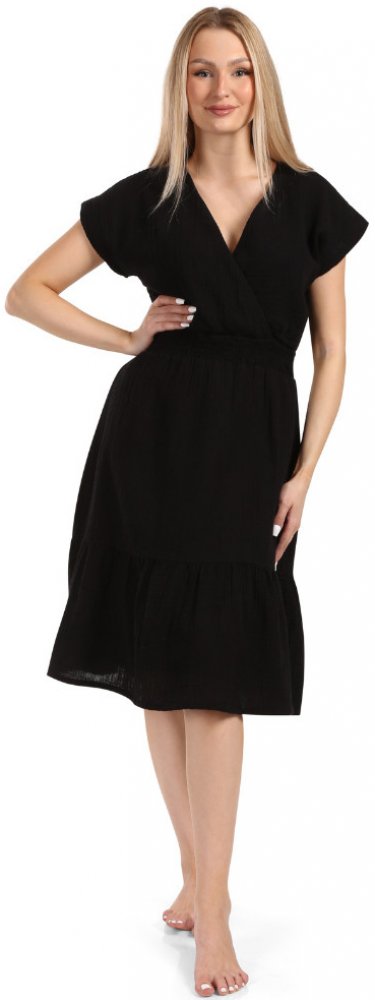 Moniel letní těhotenské a kojicí mušelínové šaty Black