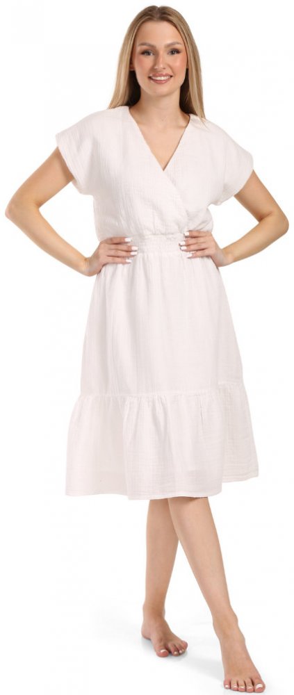Moniel letní těhotenské a kojicí mušelínové šaty White