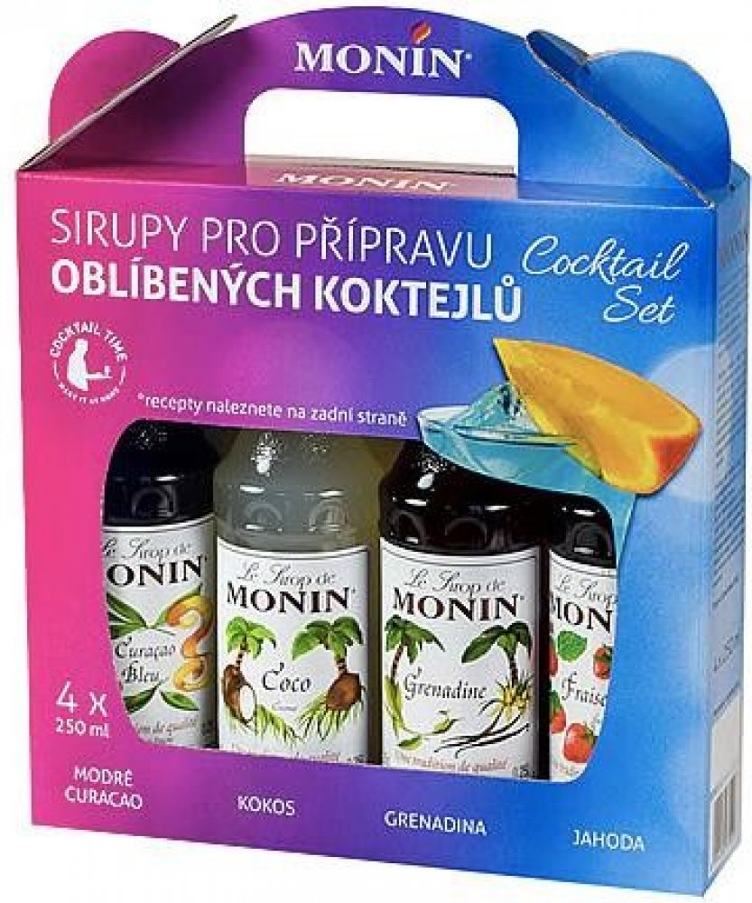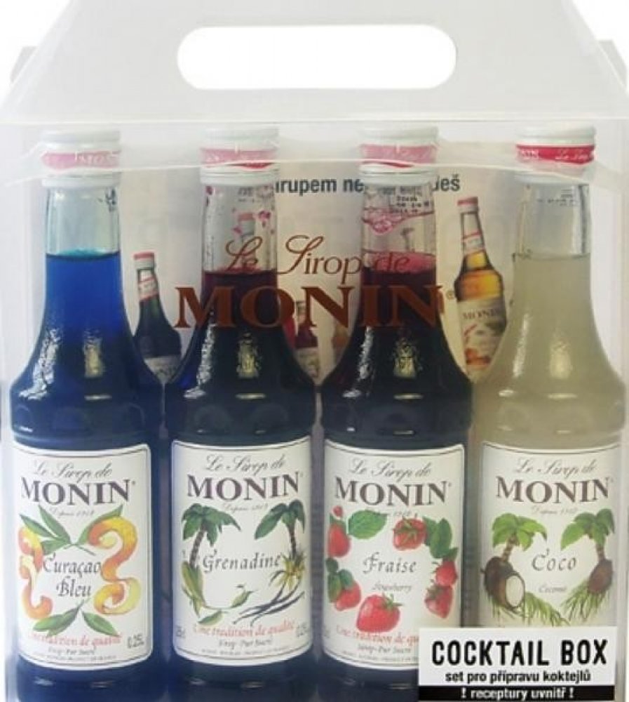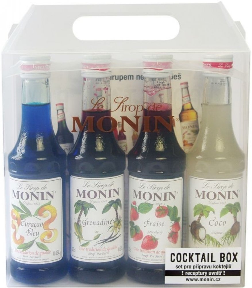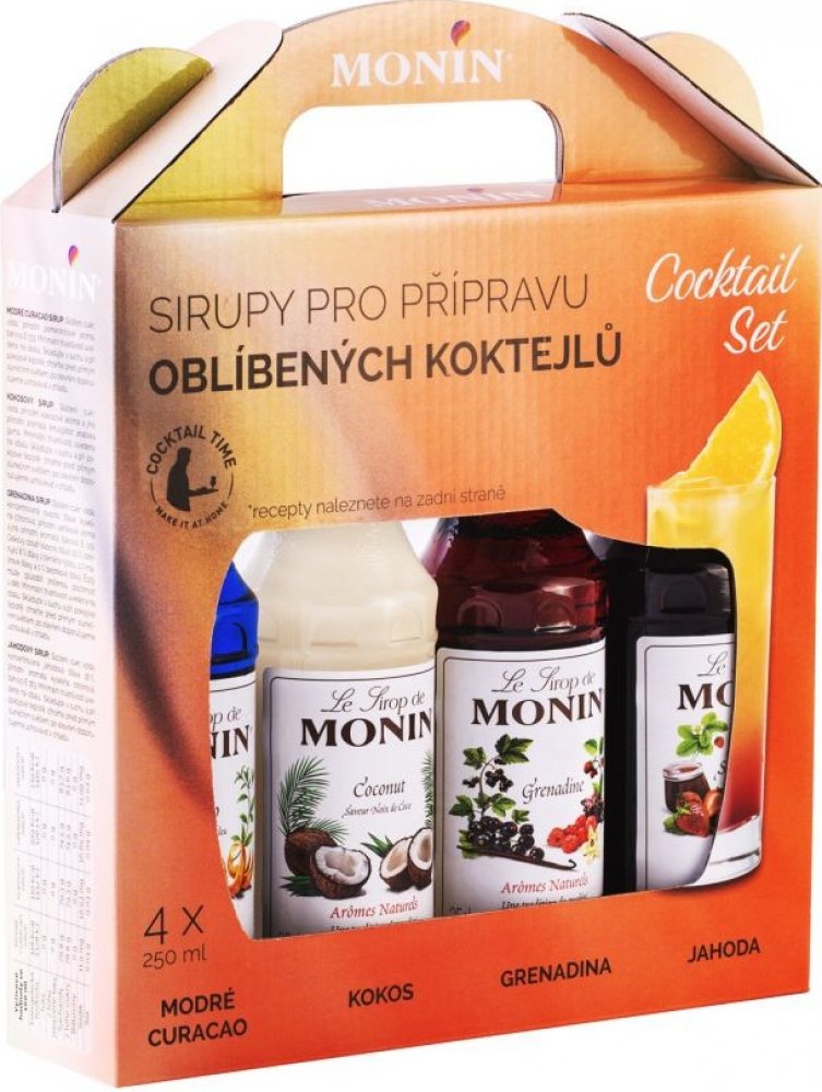 Zaručeného úspěchu docílíte u svých hostů světoznámými koktejly, např. Piña Colada, nebo netradičně ochucenou šlehačkou. K tomuto účelu slouží sirupy k ochucení koktejlů a šlehačky Monin Cocktail Box. Jedná se o balení kombinace základních příchutí používaných pro přípravu koktejlů v atraktivním dárkovém balení, doplněném o přehledné recepty.