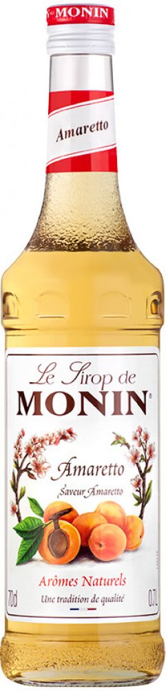 Amaretto je italský výraz pro „jemně hořký", popisující jemnou chuť propůjčenou „mandorlou amara" – hořkou mandlí. „Amaretto" zdomácnělo jako název pro likér, který může (ale nemusí) obsahovat mandle. Likér je totiž v základu vyroben z broskví a obsahuje další koření a příchutě. Monin Amaretto je skvělou alternativou k chuťově podobnému likéru a má neobvyklou šíři použití.