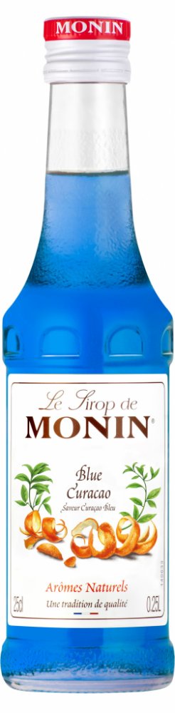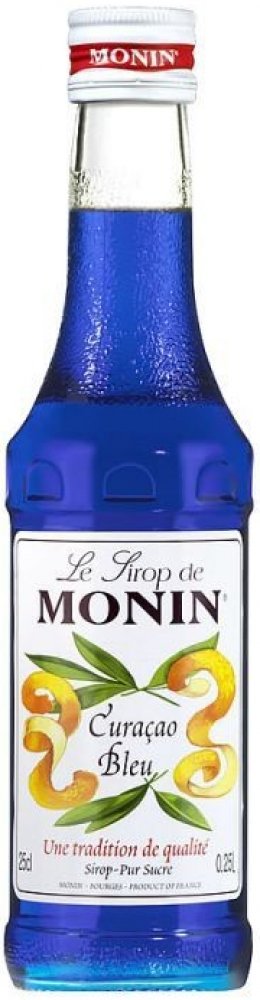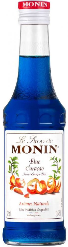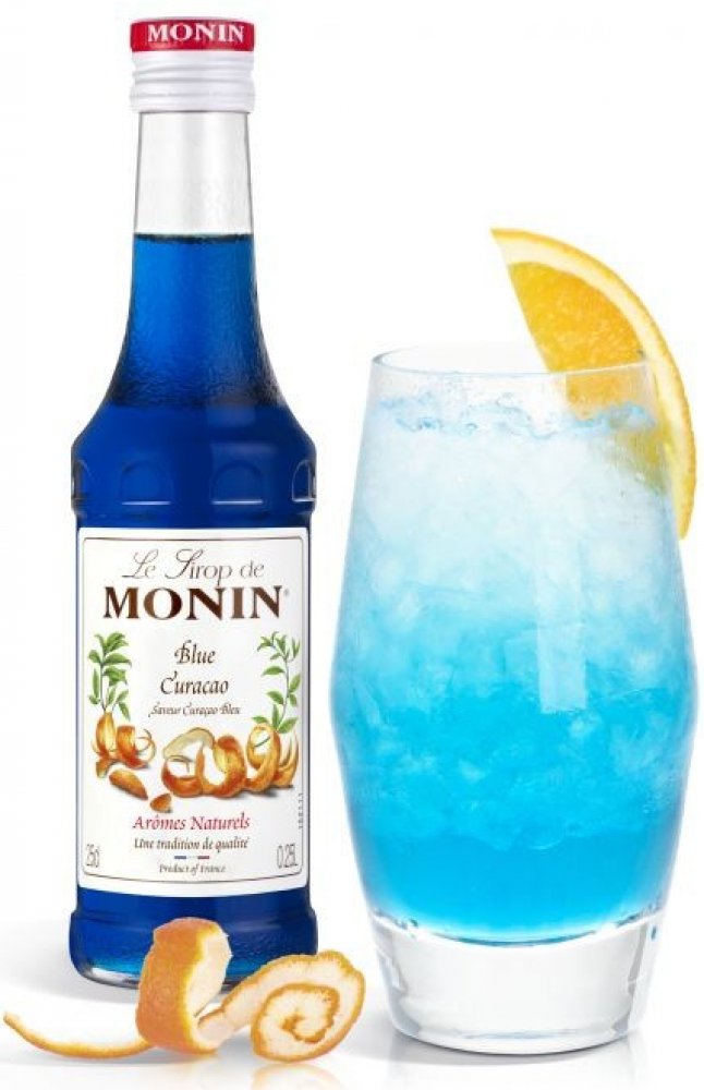 Nápoj byl objeven víceméně náhodou a o jeho rozvoj uvedení na trh se zasloužila jedna španělská rodina z Curaçaa v 19. století. Likér má pomerančovou příchuť s několika stupněmi hořkosti. Nejznámějším typem modrého Curaçao je senzační temně modré. Jeho nealkoholická verze MONIN Blue Curaçao je určena především k obarvení vašeho nápoje, jemuž navíc dodá lehce exotické aroma.