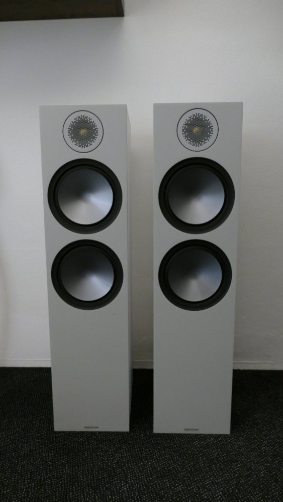 Akusticky průhledné mřížky zakrývající tweeter, které jsou pro Monitor Audio charakteristické, mají hexagonální „očka“ a dávají tím reprosoustavám Bronze jedinečný charakter, jelikož si hrají se světlem odrážejícím se od zlaté kopulky. Pozlacené terminály a okáblování z postříbřené bezkyslíkaté mědi Pureflow zabezpečují precizní přenos signálu.