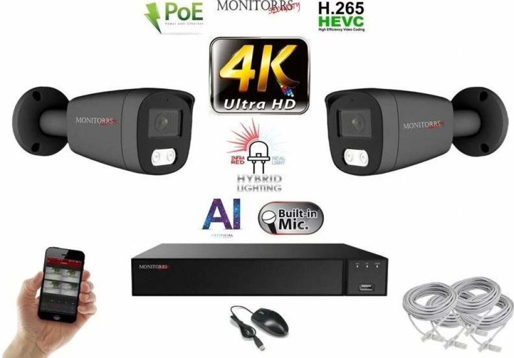 ️ Monitorrs Security 8 MPix IP kamerový set – Eco Line, Ultra HD rozlišení (8MP, 3864×2192)Cenově výhodný kamerový systém s vysokým rozlišením, AI detekcí a PoE