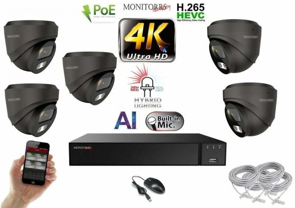 ️ Monitorrs Security 8 MPix IP kamerový set – Eco Line, Ultra HD rozlišení (8MP, 3864×2192)Cenově výhodný kamerový systém s vysokým rozlišením, AI detekcí a PoE