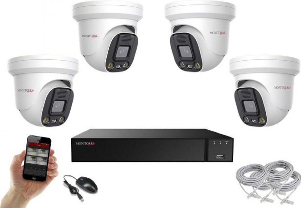 IP kamerový systém se 4 kamerami s rozlišením 5 Mpix - 2616 (H) * 1964 (V)4 mm objektiv s úhlem záběru 80°; Kamery jsou v kovovém, vodotěsném (IP67) antivandal pouzdru s nočním přisvícením až do 40 mInteligentní IP kamera s aktivním zvukovým a světelným odstrašením ;Smart noční osvětlení; Infra Led které přepne na reálné světlo při detekci pohybu.Inteligentní kamera s rozpoznáváním lidské přítomno...