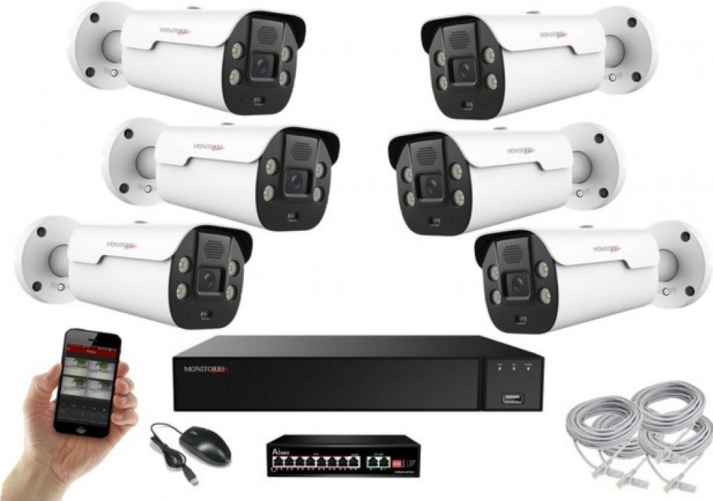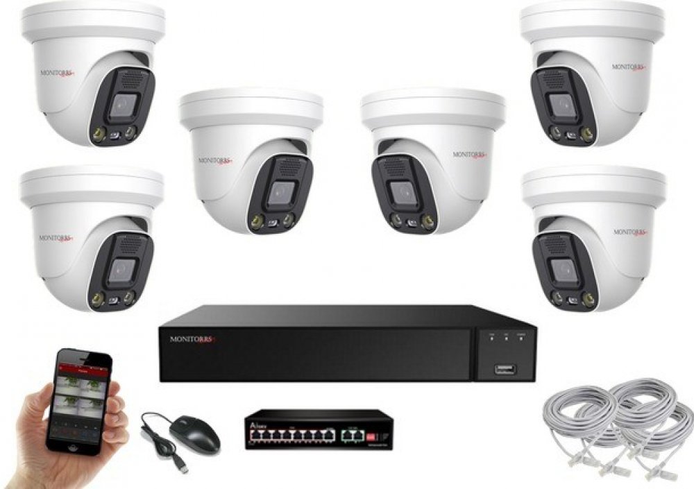 IP kamerový systém se 6 kamerami s rozlišením 5 Mpix - 2616 (H) * 1964 (V)4 mm objektiv s úhlem záběru 80°; Kamery jsou v kovovém, vodotěsném (IP67) antivandal pouzdru s nočním přisvícením až do 40 mInteligentní IP kamera s aktivním zvukovým a světelným odstrašením ;Smart noční osvětlení; Infr Led které přepne na reálné světlo při detekci pohybu.Inteligentní kamera s rozpoznáváním lidské přítomnos...
