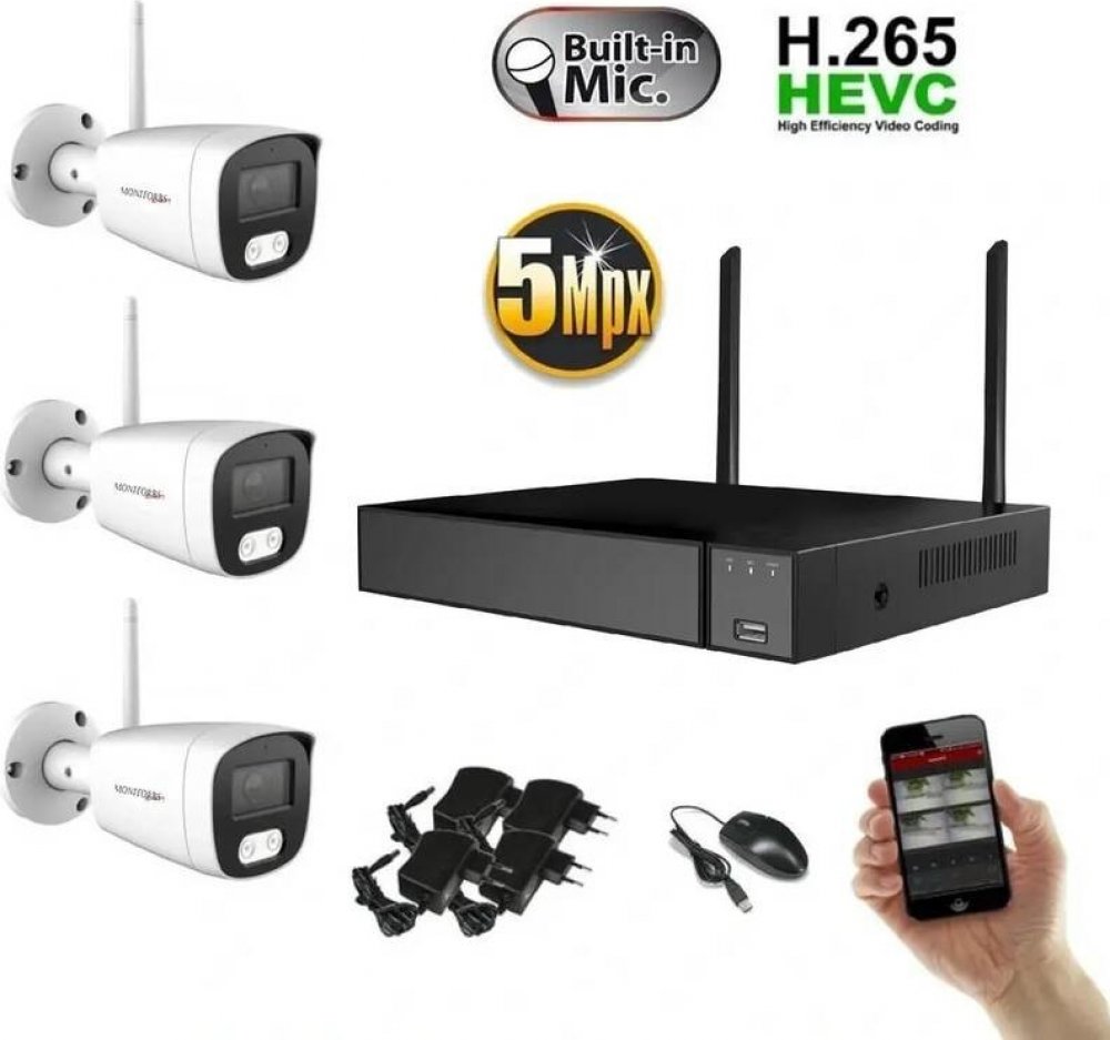 Bezdrátový kamerový systém WIFI se 3 kamerami s rozlišením 5 Mpix - 2 880 (H) * 1 620 (V)Bezpečnostní kamery jsou v kovovém, vodotěsném (IP66) antivandal pouzdře s nočním přísvitem až do 25mZáznamové zařízení je 8 kanálové, čili zůstává možnost na dodatečné rozšíření kamerového systému.České menuVideo výstup: 1x VGA + 1 x HDMIRežim nahrávání Auto, Manuál nebo nahrávání při registraci pohybuMožnost...