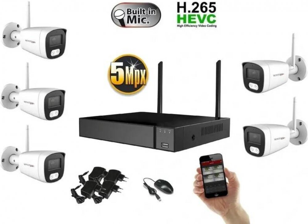 Bezdrátový kamerový systém WIFI s 5 kamerami s rozlišením 5 Mpix - 2 880 (H) * 1 620 (V)Bezpečnostní kamery jsou v kovovém, vodotěsném (IP66) antivandal pouzdře s nočním přísvitem až do 25mZáznamové zařízení je 8 kanálové, čili zůstává možnost na dodatečné rozšíření kamerového systému.České menuVideo výstup: 1x VGA + 1 x HDMIRežim nahrávání Auto, Manuál nebo nahrávání při registraci pohybuMožnost ...