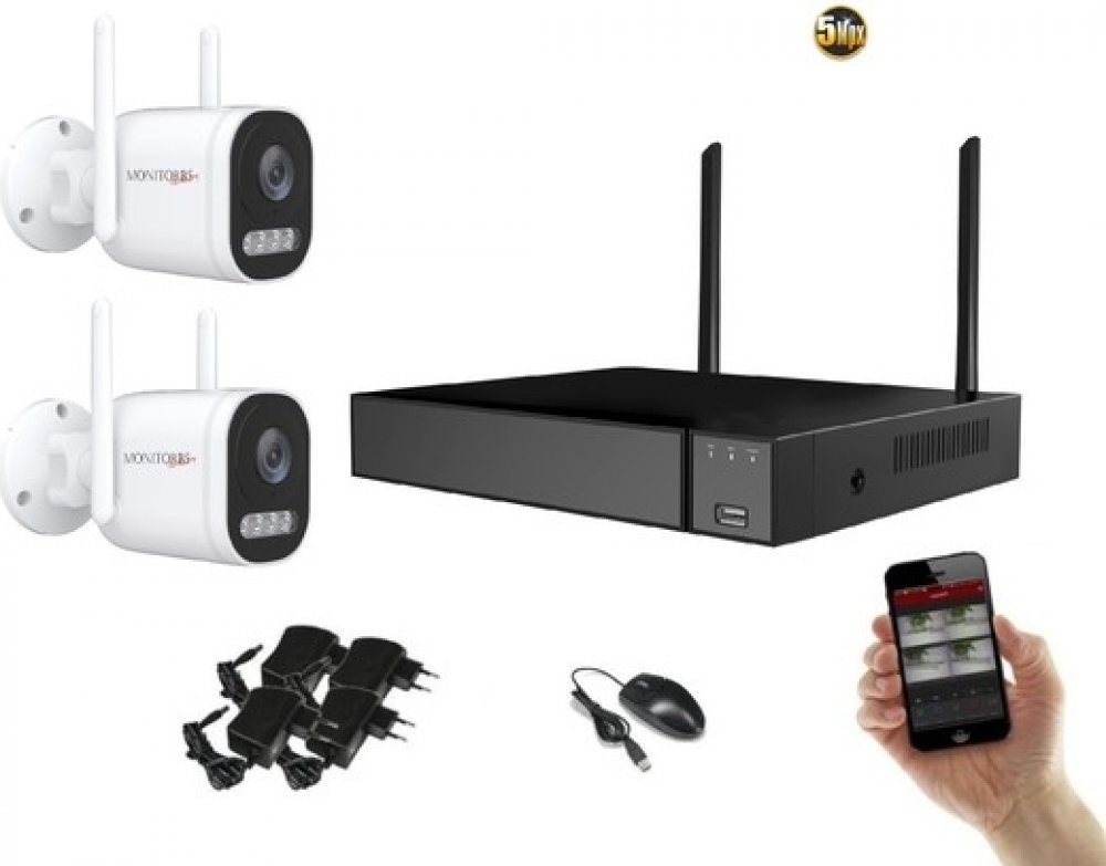 Bezdrátový kamerový systém WIFI se 2 kamerami s rozlišením 5 Mpix - 2 880 (H) * 1 620 (V)Bezpečnostní kamery jsou v plastovém, vodotěsném (IP65) pouzdře s nočním přísvitem až do 25mZáznamové zařízení je 8 kanálové, čili zůstává možnost na dodatečné rozšíření kamerového systému.České menuVideo výstup: 1x VGA + 1 x HDMIObousměrná audio komunikace pomocí vestavěného mikrofonu a reproduktoruRežim nahr...