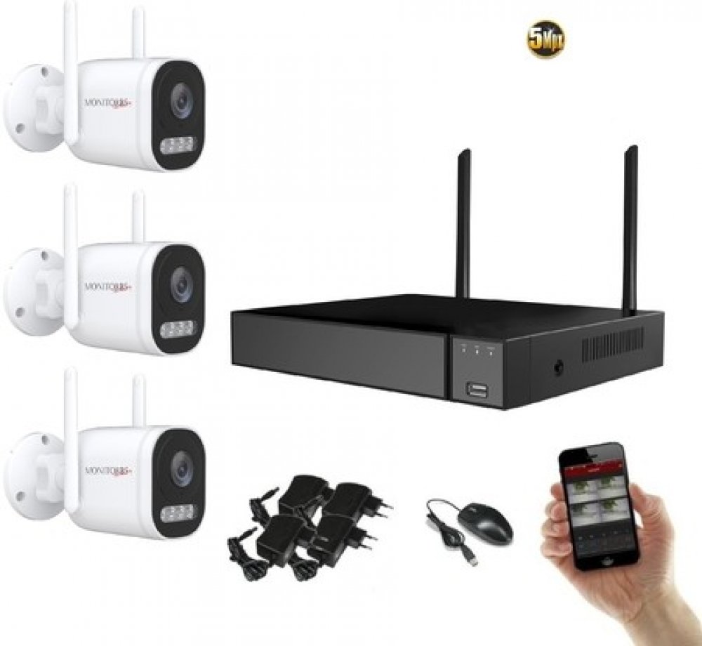 Bezdrátový kamerový systém WIFI se 3 kamerami s rozlišením 5 Mpix - 2 880 (H) * 1 620 (V)Bezpečnostní kamery jsou v plastovém, vodotěsném (IP65) pouzdře s nočním přísvitem až do 25mZáznamové zařízení je 8 kanálové, čili zůstává možnost na dodatečné rozšíření kamerového systému.České menuVideo výstup: 1x VGA + 1 x HDMIObousměrná audio komunikace pomocí vestavěného mikrofonu a reproduktoruRežim nahr...