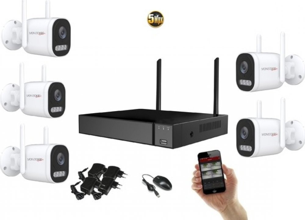 Bezdrátový kamerový systém WIFI s 5 kamerami s rozlišením 5 Mpix - 2 880 (H) * 1 620 (V)Bezpečnostní kamery jsou v plastovém, vodotěsném (IP65) pouzdře s nočním přísvitem až do 25mZáznamové zařízení je 8 kanálové, čili zůstává možnost na dodatečné rozšíření kamerového systému.České menuVideo výstup: 1x VGA + 1 x HDMIObousměrná audio komunikace pomocí vestavěného mikrofonu a reproduktoruRežim nahrá...