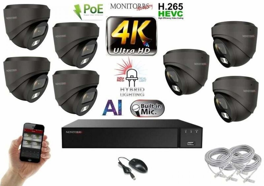 ️ Monitorrs Security 8 MPix IP kamerový set – Eco Line, Ultra HD rozlišení (8MP, 3864×2192)Cenově výhodný kamerový systém s vysokým rozlišením, AI detekcí a PoE