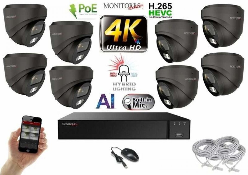 Monitorrs Security AI Hybrid Light IP 8 kamerový set 8 Mpix GDome (6482K8)