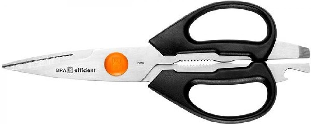 Hledáte multifunkční nůžky s využitím v kuchyni i v domácnosti? S masivními kuchyňskými nůžkami Monix Efficient můžete krájet zeleninu, drůbež či ryby. Navíc se tyto nůžky dají použít při louskání ořechů, stříhání papírů a provázků i jako otvírák na konzervy. Čepel nůžek Monix Efficient je vyrobena z prvotřídní nerezavějící oceli a držadla z odolného plastu. Díky protiskluzové úpravě rukojeti je j...