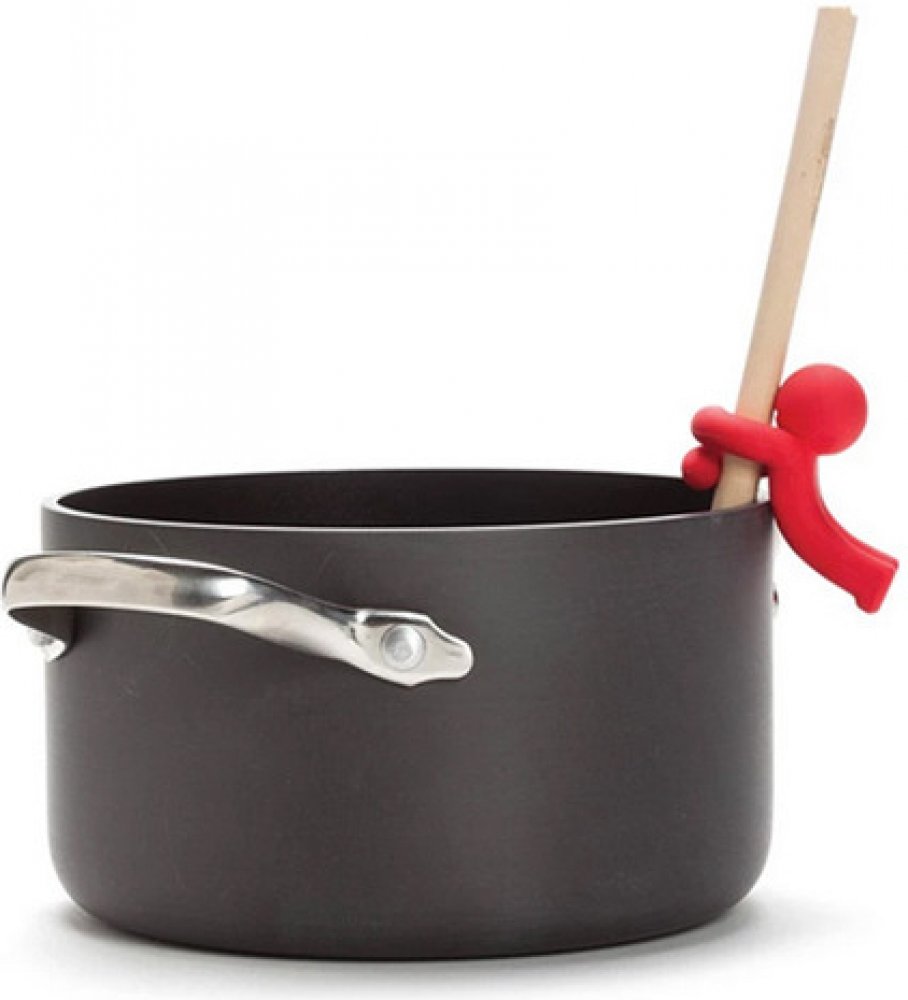 Tento vtipný držák na vařečky ve tvaru postavičky červené barvy zajistí, aby vám vařečka během vaření nezmizela v polévce a také její podložením ochrání před nepořádkem v kuchyni. Kuchyňské náčiní tohoto skvělého pomocníka miluje a vy si ho také oblíbíte. Produkt je vyroben ze zdravotně nezávadného silikonu a je vhodný do myčky nádobí. Balení obsahuje 1 kus červené barvy.