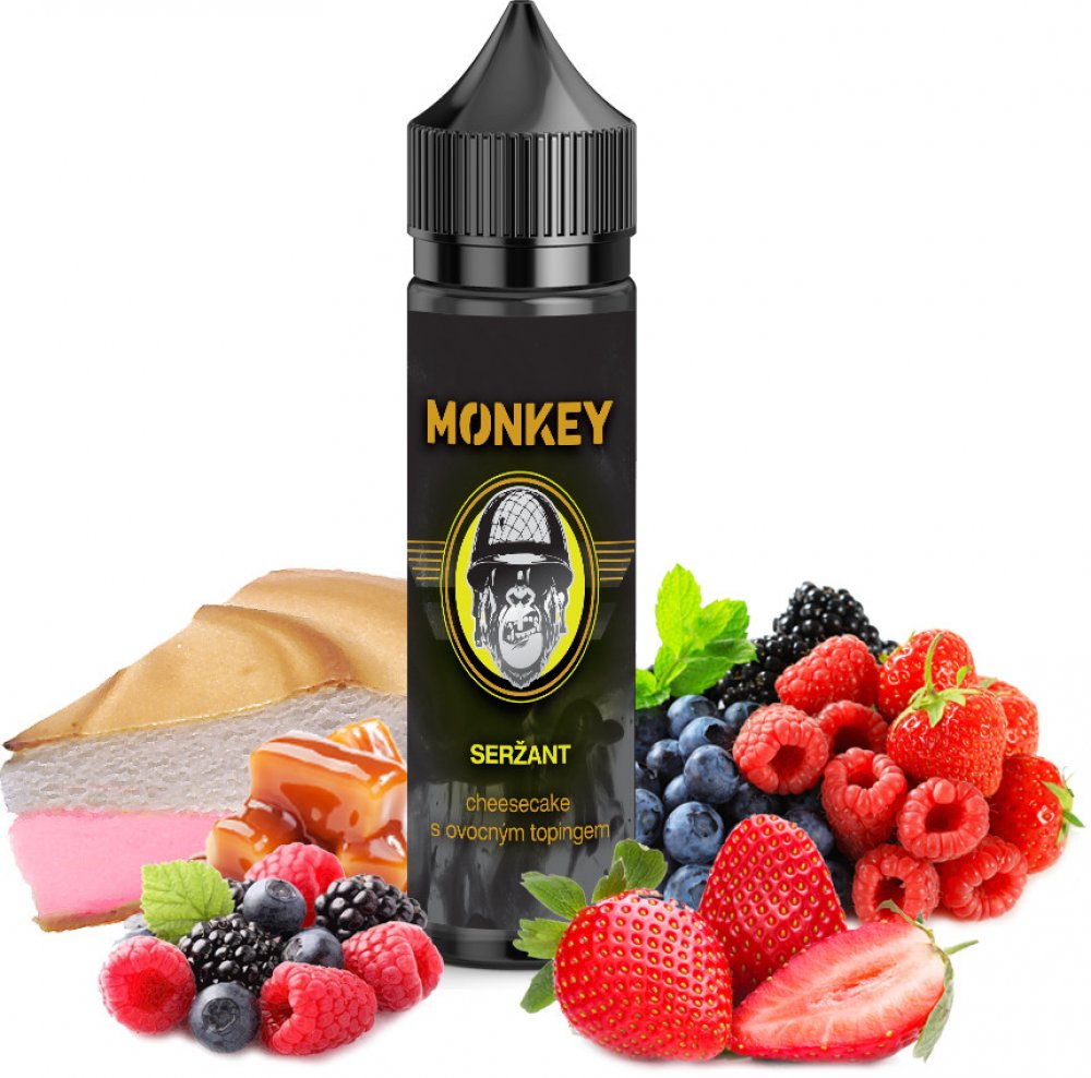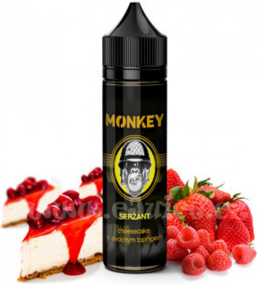 Příchuť MONKEY liquid Seržant Shake and Vape. Máte rádi cheesecake, ale už by to chtělo něco jiného? Zkuste vyzkoušet Seržanta. Jemný a přitom dostatečně hutný cheesecake dort s naprosto unikátním jahodo-malinovým topingem. Tato příchuť vás nikdy neomrzí.