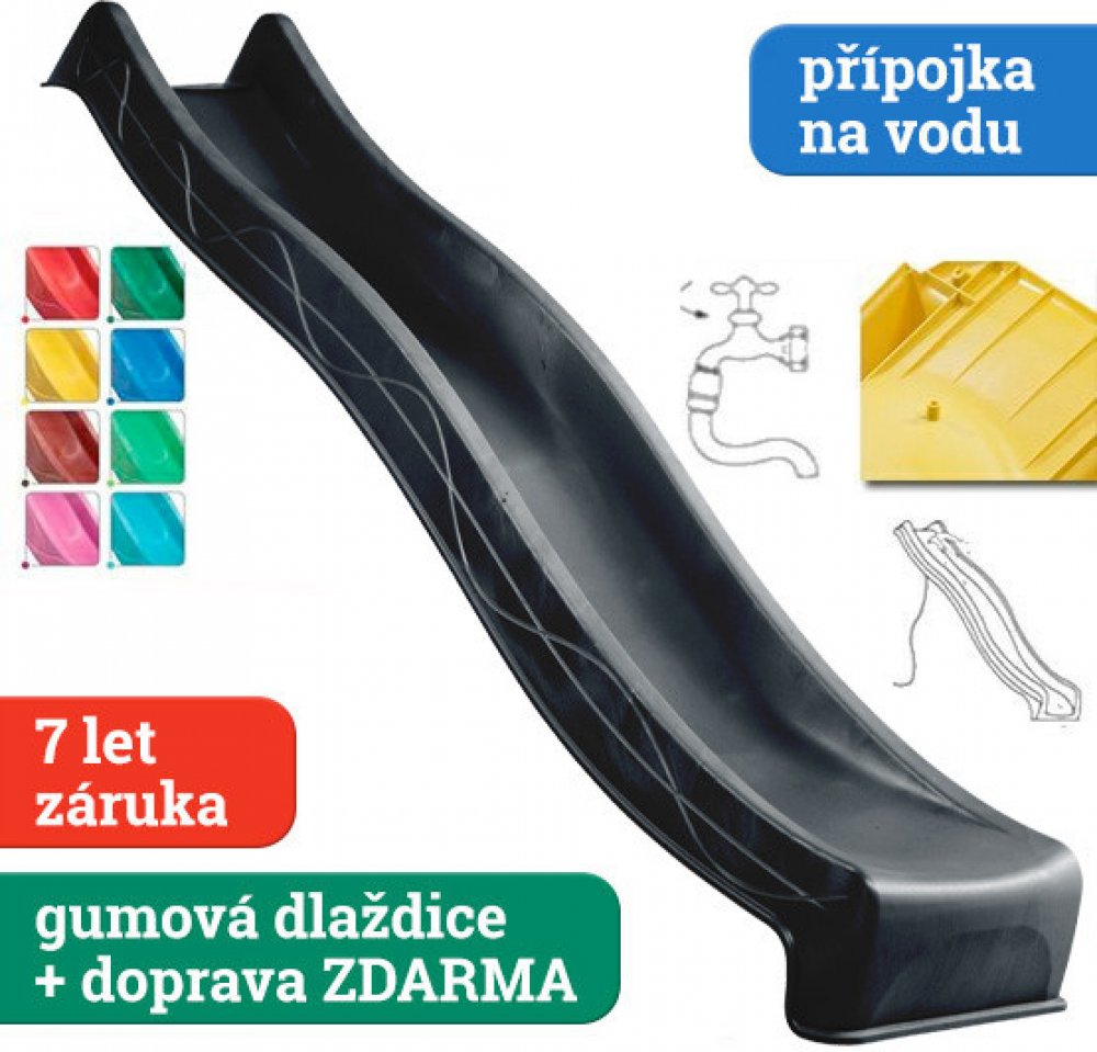 Skluzavka ze stabilního, stálobarevného plastu s UV filtrem v délce 290 cm. Antracitové provedení. PRODLOUŽENÁ 7-LETÁ ZÁRUKA !
