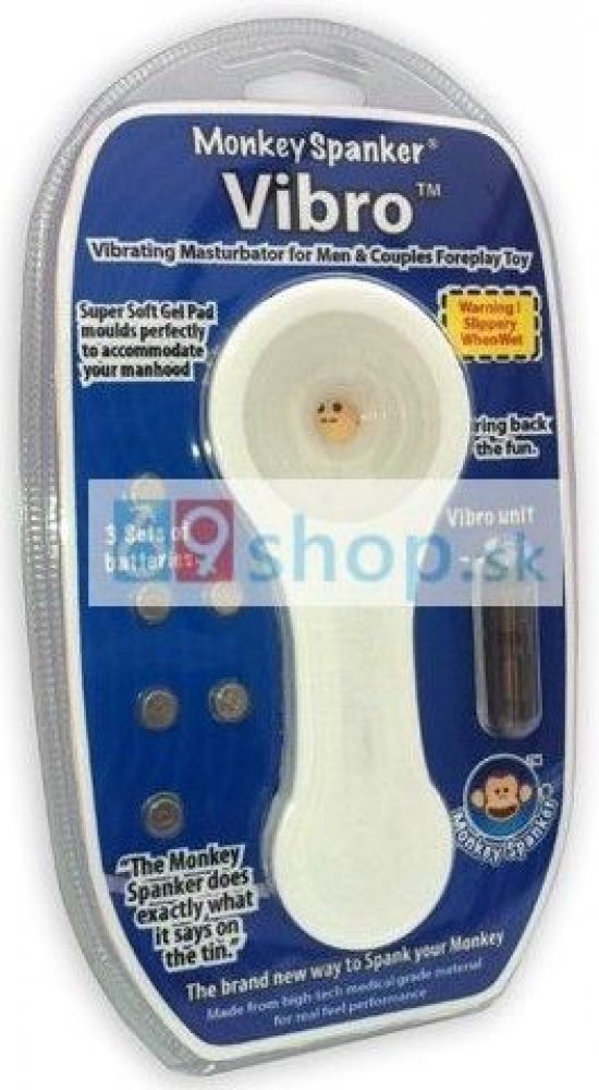 Už vás unavuje obyčejná masturbace? Pořiďte si zajímavou pomůcku. Za jednoduchým plastovým designem se skrývá zajímavý vibrační masturbátor. Jeho použití je tak snadné a přeci velmi učinné. Navíc je nenápadný a skladný, vhodný i na cesty nebo do práce.Masturbátor Monkey Spanker je hodně zábavný a příjemný způsob, jak dosáhnout intenzivního orgasmu za krátký okamžik. Snadno se používá, stačí jen pevně uchopit a otvorem v silikonovém středu kruhového konce prostrčit penis. Pohybem nahoru a dolů lze najít správné místečko, kde je penis nejvzrušivější. Ve středové části masturbátoru je uloženo vyjímatelné vibrační vajíčko, které napájí dvě hodinkové baterie. Součástí balení jsou hněd dvě sady. Stiskem tlačítka na konci vibrátorku se pouští vibrace, které se přenáší do kruhové masturbační části. Spuštěním vibrací se celý zážitek ještě umocní. Masturbátor i penis je vhodné promazat lubrikantem, aby to dobře klouzalo.
