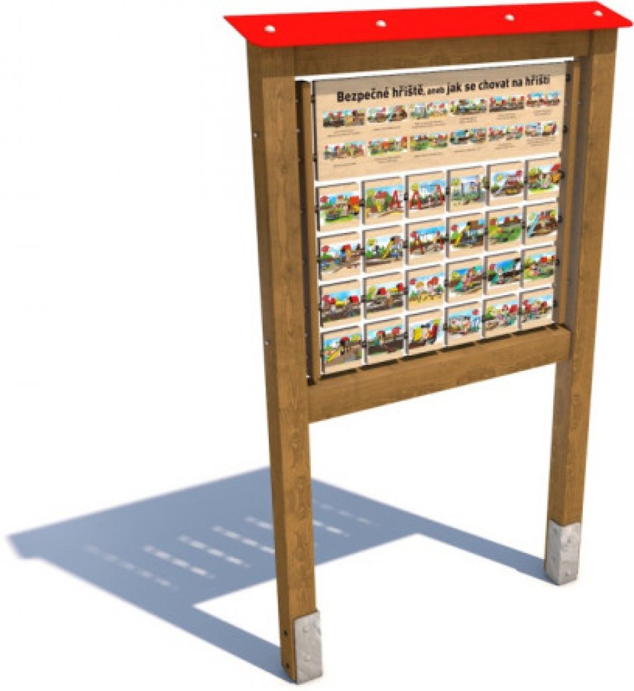 Tento panel je unikátní tím, že místo hledání totožných obrázků děti hledají související páry. Hlavním motivem pexesa jsou různé prvky bezpečného chování na hřišti a v jeho okolí. Děti si mohou zábavnou formou osvojit pravidla be...