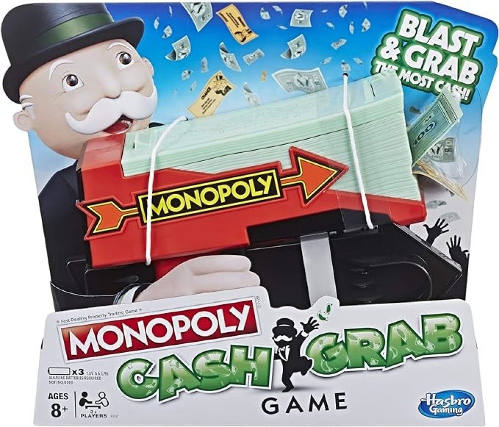 Obsahuje blaster na peníze, blaster, 100 monopolních bankovek, 25 karet náhody a herní instrukce. Baterie nesjou součástí balení.