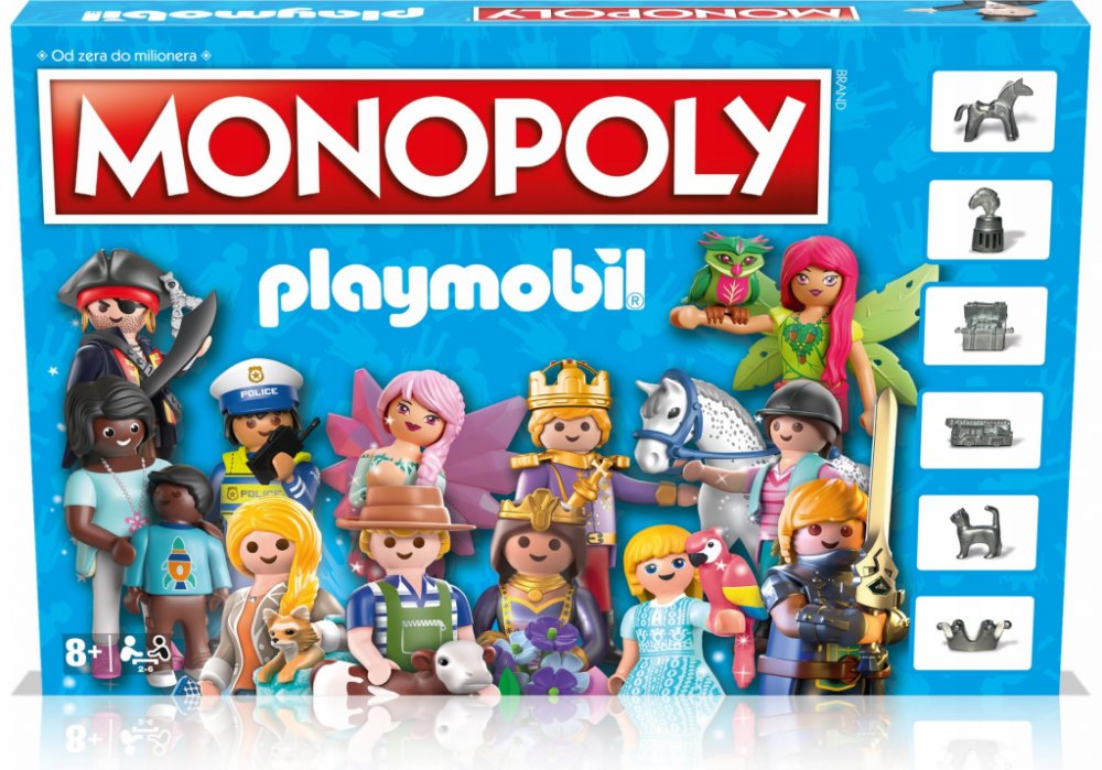 Vydejte se na cestu kolem světa v této zcela nové verzi hry MONOPOLY! Cestujte po hřišti od stáje až po policejní ředitelství, princeznovský hrad a pirátská loď s lebkou, nakupujte kultovní sady a PLAYMOBIL a vydejte se na cestu k bájnému Velkému hradu Novelvíce. Popadněte přizpůsobené karty Šance a Sociální truhly, Chcete-li získat více cen a trestů: najdete mýtický pirátský poklad, Strávit den s princeznou, jít na policejní hlídku, nebo skončit Ve vězení?