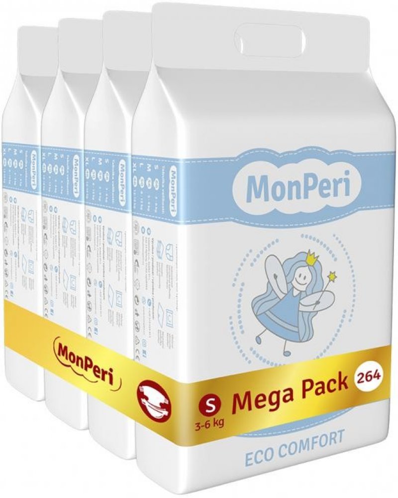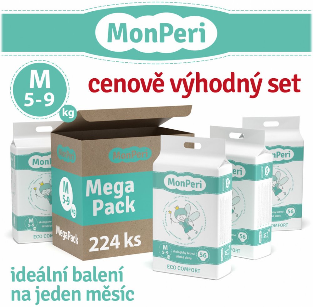 jednorázové dětské plenky MonPeri ECO comfort Mega pack M 5-9 kg / 224 ks