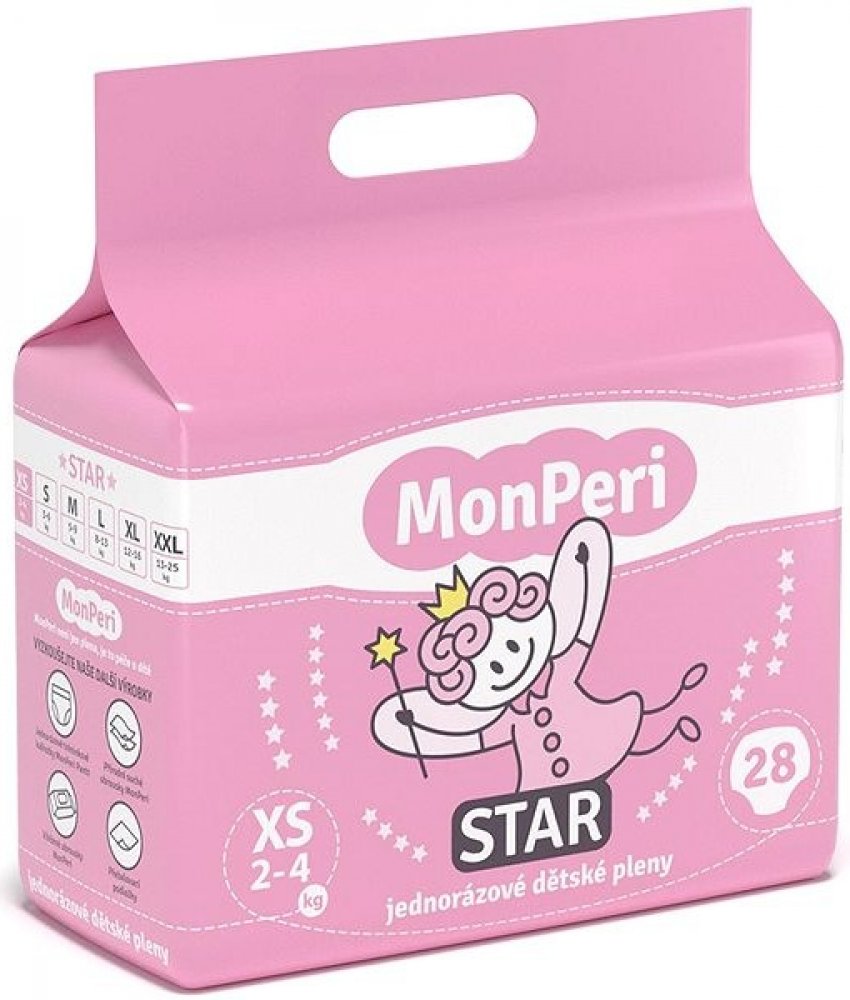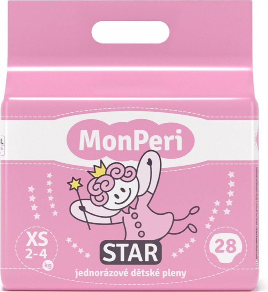 Dětské pleny MonPeri Star jsou perfektně savé a velmi šetrné k dětské pokožce. Hypoalergenní plenky neobsahují parfemaci a mají prodyšnou AIR TOP vrstvu, což umožňuje pokožce volně dýchat. Plenka disponuje širokým pružným pasem, který zabraňuje protékání plenky v oblasti beder. Speciální dvojité manžety kolem nožiček udrží obsah pleny na svém místě. Nebrání volnému pohybu dítěte. XS Velikost 2 – 4 kg Hmotnost dítěte 28 ks Počet ks v balení Klíčové vlastnosti dětských hypoalergenních jednorázových plen MonPeri STAR, vel. XS (28 ks)Perfektně savé a šetrné k pokožceIdeální již od narozeníChrání před podrážděním pokožkyHypoalergenní plenyNebrání volnému pohybu dítěteEliminují pach, výskyt opruzenin a vyrážekMateriály a technologieFunkční složení a anatomický 3D střih zajistí vysokou ochranu proti protečení.Široký pružný pas brání protékání plenky v oblasti beder.Nový AIR TOP...