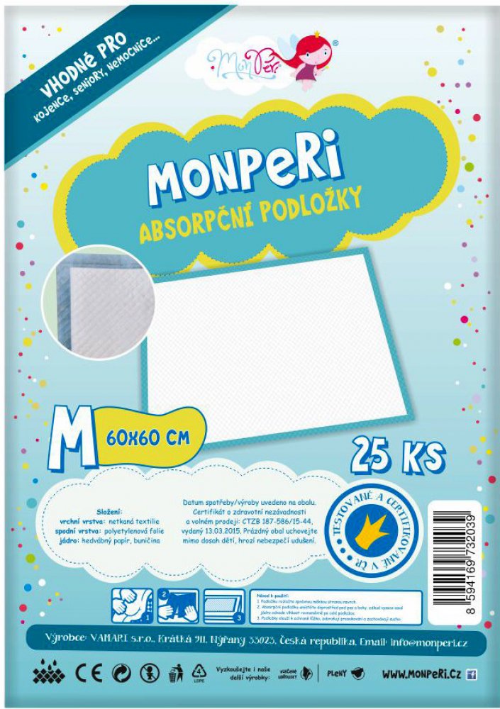 MonPeri absorpční podložky M 60x60cm 15ks=bal