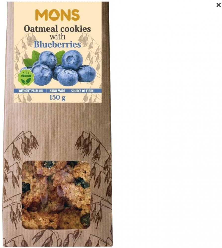 Ovesné vločky 46 % (EU), cukr, kokosový olej, sušené borůvky 9 % (EU/mimo EU) (borůvky 50 %, cukr, glukózo-fruktózový sirup, regulátor kyselosti (kyselina citronová), přírodní aroma), pšeničná mouka, řepkový olej, kypřicí látka (difosforečnan disodný, hydrogenuhličitan sodný).