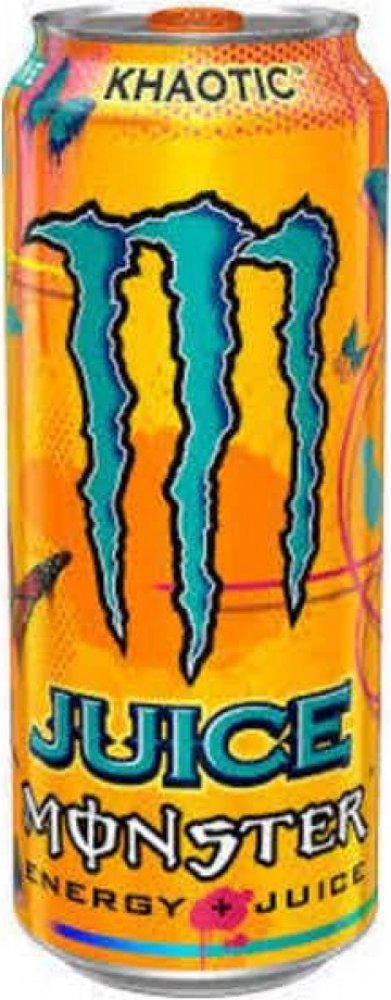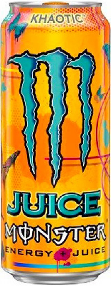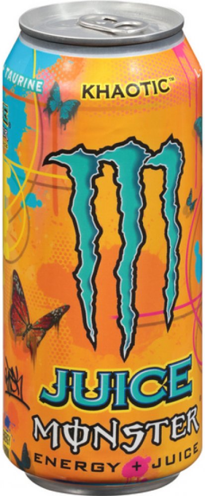 Energetický nápoj Monster, nízkokalorický s příchutí tropického ovoce Složení: voda, cukr, glukóza, jablečný džus z koncentrátu, přírodní aroma, taurin, kyselina citronová, ovocný džus z koncentrátu (broskev, nektarinka), regulátor kyselosti (citronan sodný), ananasový džus z koncentrátu, extrakt z kořene ženšenu, koncentrát ze šťávy z bílého hroznu, konzervační látka (sorban draselný), kofein, kyselina jablečná, sladidlo (sukralóza), citrát draselný, L-karnitin L-tatrát, niacin (B3), barvivo (betakaroten, extrakt z hroznů), inositol, pyridoxin (B6), riboflavin (B2), maltodextrin, kyanokobalamin (B12) Energetická hodnota na 100ml Energie 33,8 kcal/141 kJ Tuky 0g z toho nasycené 0g Sacharidy 8,6g z toho cukry 7,8g Bílkoviny 0g Sůl 0,2g Tento produkt není vhodný pro děti, osoby citlivé na kofein, těhotné a kojící ženy.