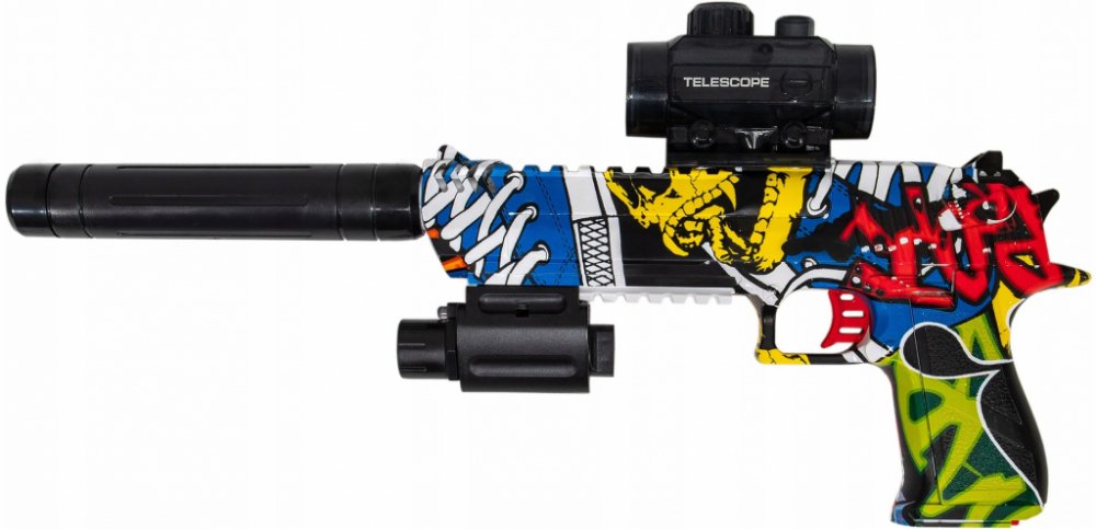 Automatická pistole na hraní s gelovými kuličkami, které po sobě nezanechávají žádné stopy ani odbarvení.