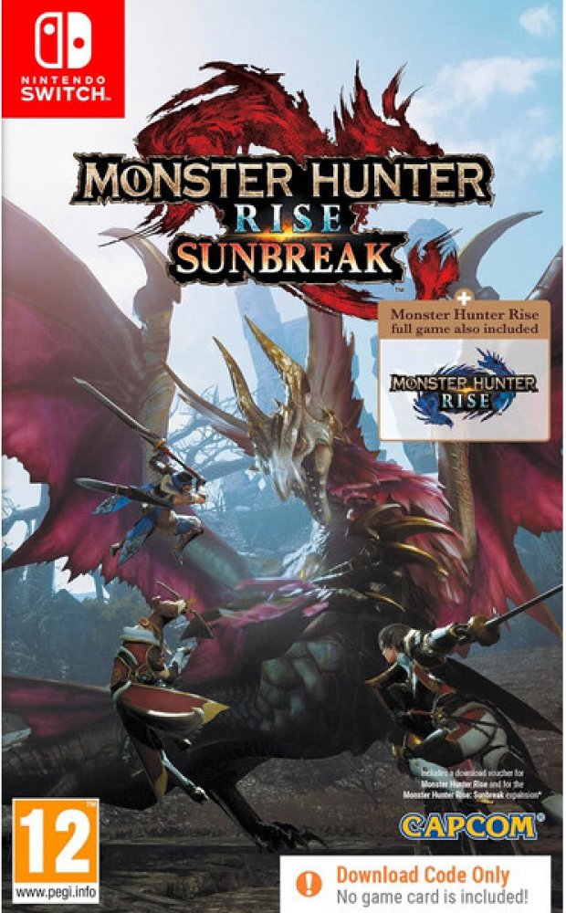 Lov bude brzy pokračovat! Expanze Sunbreak pro Monster Hunter Rise vyjde už 30. června. Svět hry Monster Hunter Rise se ještě zvětší a prohloubí s masivní expanzí, která nabídne nová monstra, nové lokace a další novinky! Tato verze obsahuje základní hru Monster Hunter Rise a expanzi Sunbreak.
