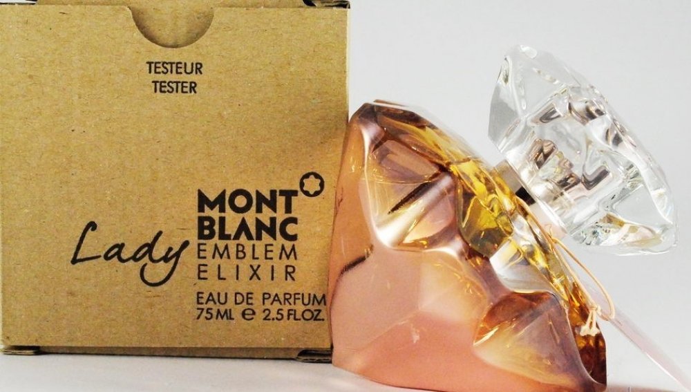 Mont Blanc 75 ml Lady Emblem dámské parfémované vody 2016 Interparfums z Německa testery mainstreamové TSA kompatibilní (≤100ml) 420 g akord kosatce, pomerančovníku vanilka, santal, pačuli