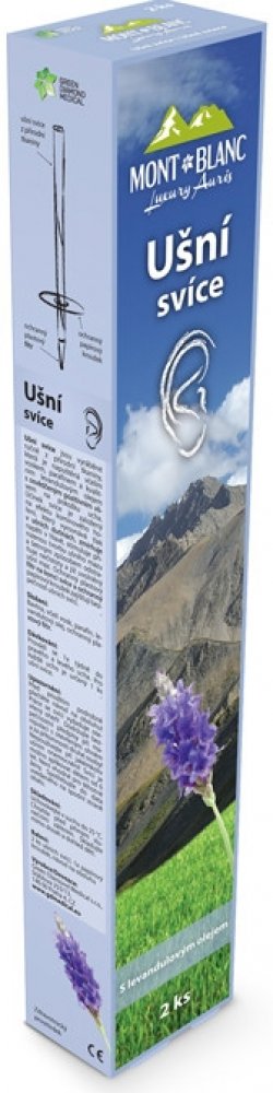 Ušní svíce Natur Mont Blanc Luxury Auris představují velmi účinnou metodu přírodní léčby. Jsou vyráběné ručně z přírodní tkaniny, která je napuštěná včelím voskem a parafínem. Včelí vosk má schopnost zmírnit zánět, jeho složení prodlužuje čas hoření a zvyšuje účinnost svíce. Ochranný plastový filtr na konci svíce a ochranný papírový kroužek zajišťují bezpečnost ušních svící. Rovný tvar ušní svíce zajišťuje mírné hoření po celou dobu aplikace.