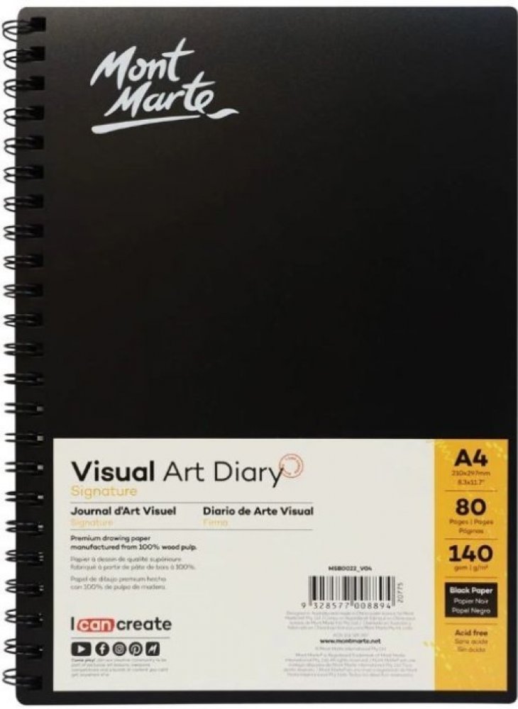 Mont Marte - spirálový kreslicí blok černých papírů - 140g/m2 - A4 - č.0022 - 80 listů