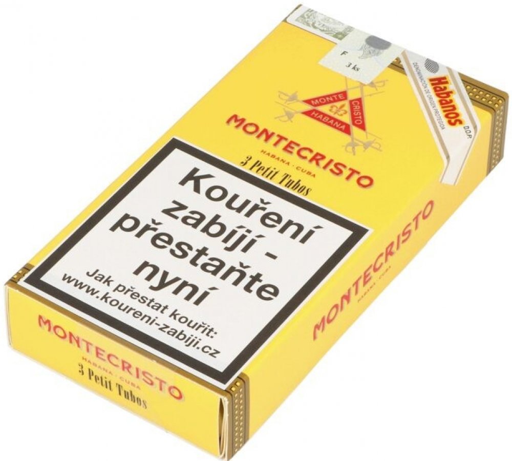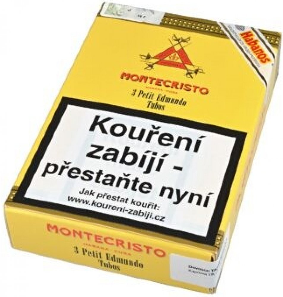 Kubánské doutníky Montecristo Petit Edmundo A/T. Kvalitní ručně balené doutníky elegantního formátu Petit Robusto okouzlí nejen tvarem. Vynikající chutě a vůně toho doutníku jako je kakao, káva, oříšky a čokoláda včetně jeho tvaru, z něj dělají velmi oblíbený doutník mezi kuřáky. Doba hoření je cca 45-90 minut. Kořeněné doutníky Montecristo patří mezi jedny z nejprodávanějších kubánských doutníků na světě díky jejich kvalitě a výborné chuti. Charakteristická je jejich výrazná středně silná až silná chuť a zapamatovatelná krabice s motivem známého románu Hrabě Monte Christo. Doutníky Montecristo Petit Edmundo A/T jsou balené po 3 ks v originální hliníkové tubě a papírové krabičce s logem Montecristo. Prodávají se pouze po celém balení