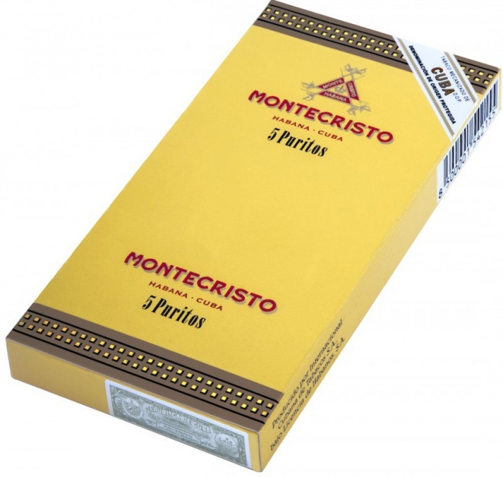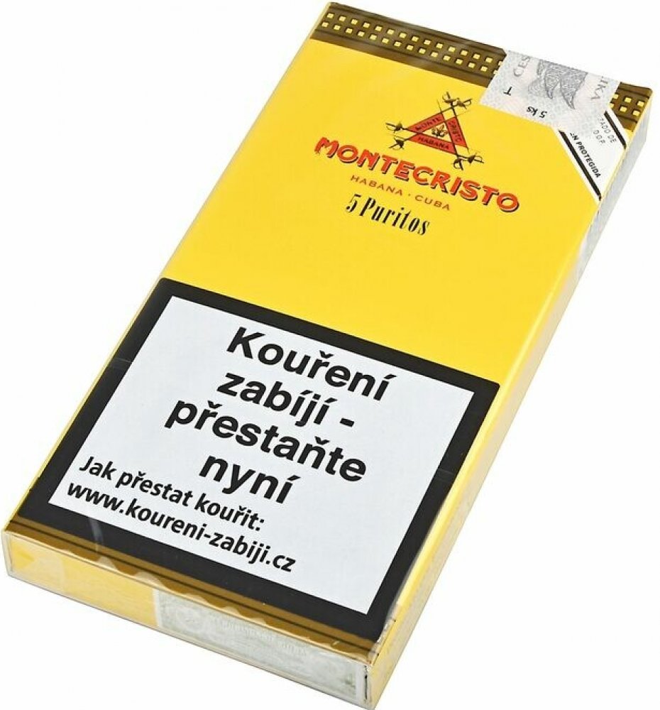 Kubánské doutníky Montecristo Puritos. Malé strojově balené dountíky jsou vyráběné z nejlepších tabáků z oblasti Vuelta Abajo.Puritos je ideální volbou pro krátké pokouření či posezení u dobrého drinku s přáteli. Výborný malý doutníky charakteristický vůní a chutí známou z ostatních doutníků Montecristo. Doba hoření je cca 15-25 minut. Doutníky Montecristo patří mezi jedny z nejprodávanějších kubá...