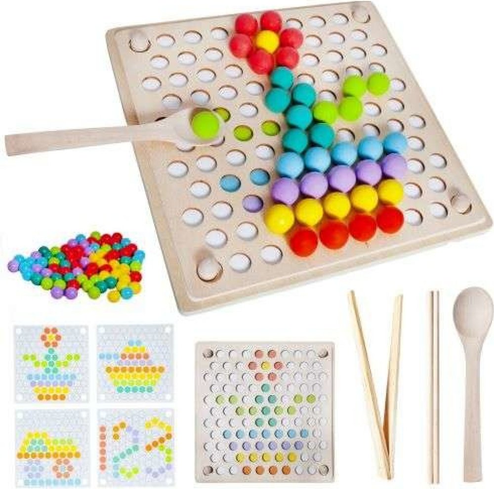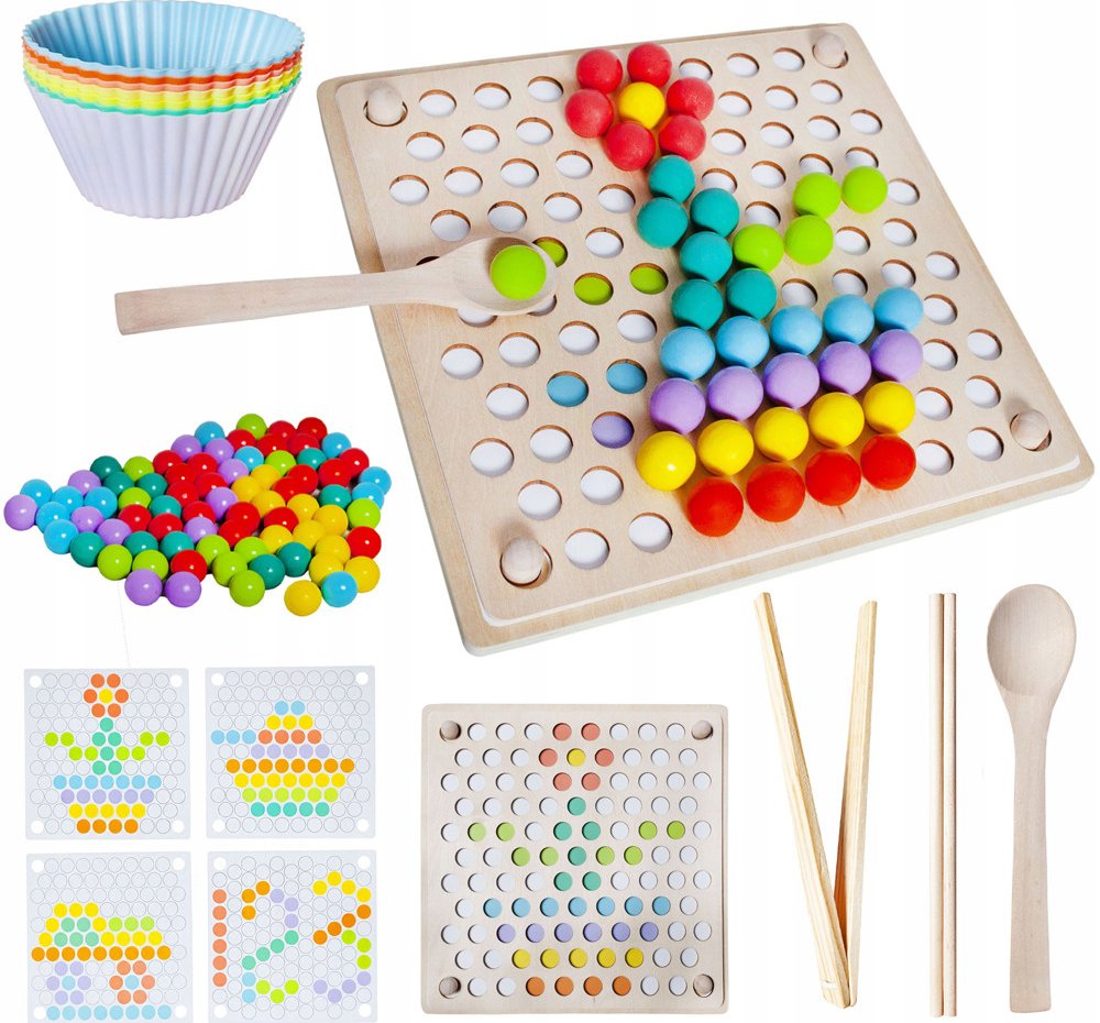 Dřevěná skládačka Montessori je navržena tak, aby podporovala rozvoj dětí skrze hru, která zlepšuje jejich smysly, motoriku a kreativitu. Vyrobena z přírodního dřeva, skládačka nabízí jednoduchý, ale efektivní design, který je odolný, bezpečný a ekologický. Děti mohou pomocí barevných kuliček vytvářet různé obrazce a vzory, čímž se učí rozpoznávat barvy a tvary, a zároveň rozvíjejí své dovednost...