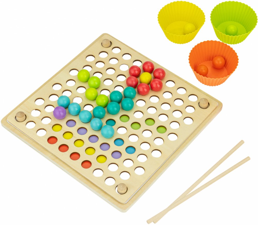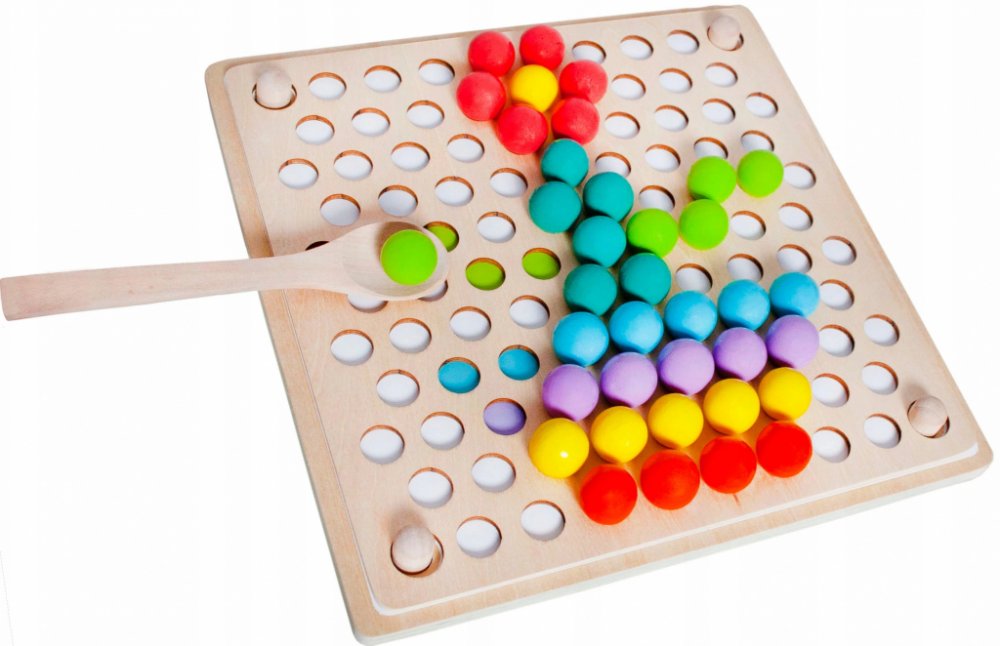 Dřevěná skládačka Montessori je navržena tak, aby podporovala rozvoj dětí skrze hru, která zlepšuje jejich smysly, motoriku a kreativitu. Vyrobena z přírodního dřeva, skládačka nabízí jednoduchý, ale efektivní design, který je odolný, bezpečný a ekologický. Děti mohou pomocí barevných kuliček vytvářet různé obrazce a vzory, čímž se učí rozpoznávat barvy a tvary, a zároveň rozvíjejí své dovednosti v oblasti koordinace a přesnosti.