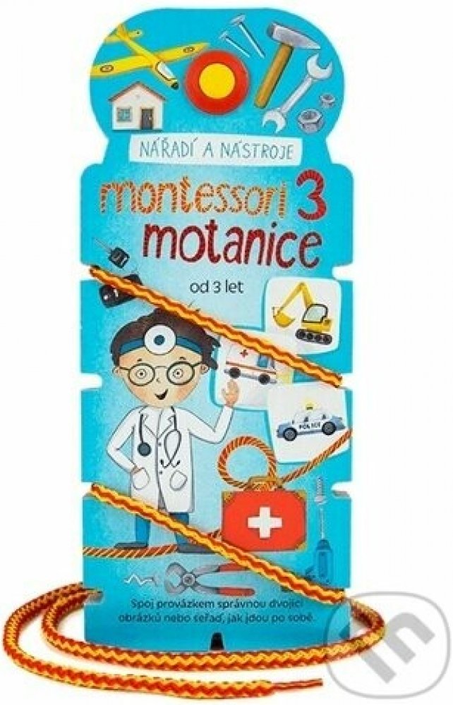Montessori motanice 3 Nářadí a nástroje S touto motanicí se Vaše dítě naučí, k čemu slouží různé nářadí a nástroje nebo například pozná, jak se staví dům, či jaký klíč použít k otevření různých zámků. Formou zábavné hry si děti zdokonalí svou manuální zručnost a jemnou motoriku, učí se trpělivosti, rozvíjejí své logické myšlení a učí se pozorovat detaily. Při hře s touto pomůckou si děti mohou vybrat s jakou kartou chtějí pracovat a následně si správné řešení ověřit na rubové straně. Tato motanice obsahuje 15 hracích karet. z kategorie Knihy | Literatura pro děti a mládež | Aktivity pro děti | Motanice od Modrý slon naleznete ne e-shopu KnihyDobrovsky.cz!