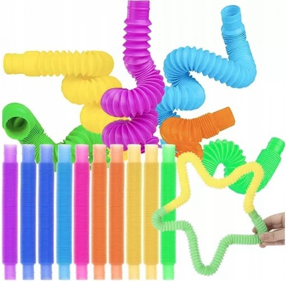 Senzorické trubky Pop Tube jsou jednoduchou a zábavnou hračkou s velkým potenciálem. Osm různobarevných trubek lze natahovat, ohýbat, spojovat a vytvářet různé tvary, což stimuluje kreativní myšlení a manuální dovednosti. Při natahování trubky vydávají zajímavý zvuk, který podporuje sluchovou i hmatovou stimulaci. Rozložená trubka dosahuje délky 41 cm, což umožňuje tvoření mnoha kombinací a figur....