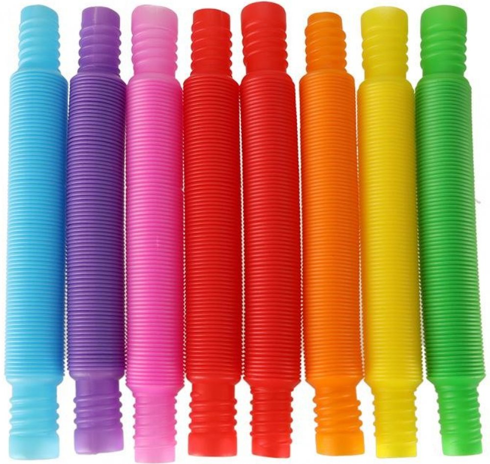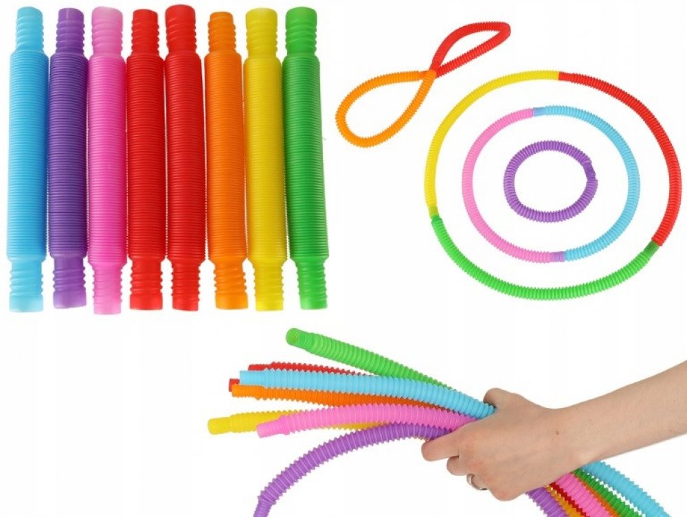 Senzorické trubky Pop Tube jsou jednoduchou a zábavnou hračkou s velkým potenciálem. Osm různobarevných trubek lze natahovat, ohýbat, spojovat a vytvářet různé tvary, což stimuluje kreativní myšlení a manuální dovednosti. Při natahování trubky vydávají zajímavý zvuk, který podporuje sluchovou i hmatovou stimulaci. Rozložená trubka dosahuje délky 41 cm, což umožňuje tvoření mnoha kombinací a figur. Trubky jsou vyrobeny z plastu.