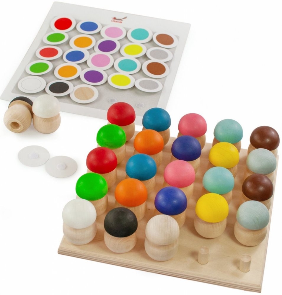 Sada je vytvořena podle systému Montessori. Pomáhá rozvíjet barevné vnímání a analýzu, koordinaci pohybu, píli, pozornost, hmatovou citlivost a jemnou motoriku. Vývojová hračka sorter je vyrobena z bezpečných materiálů. Obsah balení vzdělávací sady Ulanik Montessori dřevěná hračka "Mushroom meadow 25"25 houbiček o velikosti cca 4.5 cmpodstavec s rozměry cca 20 × 20 cm