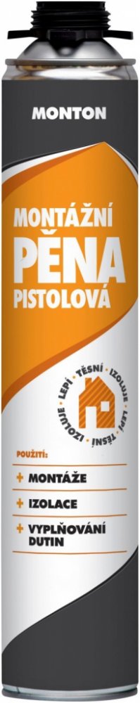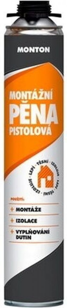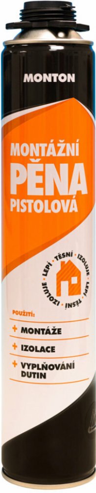 Montážní pěna MONTON Jednosložková rozpínavá polyuretanová pěna určena k profesionální montáži a utěsňování rámů oken a dveří, vyplňování stavebních spár a dutin, upevňování střešních prvků, nanášení tepelně izolačních vrstev apod. Připravena k okamžitému použití pomocí aplikační pistole. Podrobnější informace naleznete v technickém listu k dispozici ke stažení v sekci ""Datové listy"".