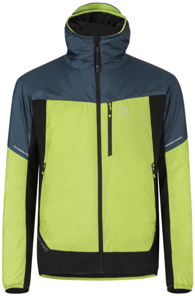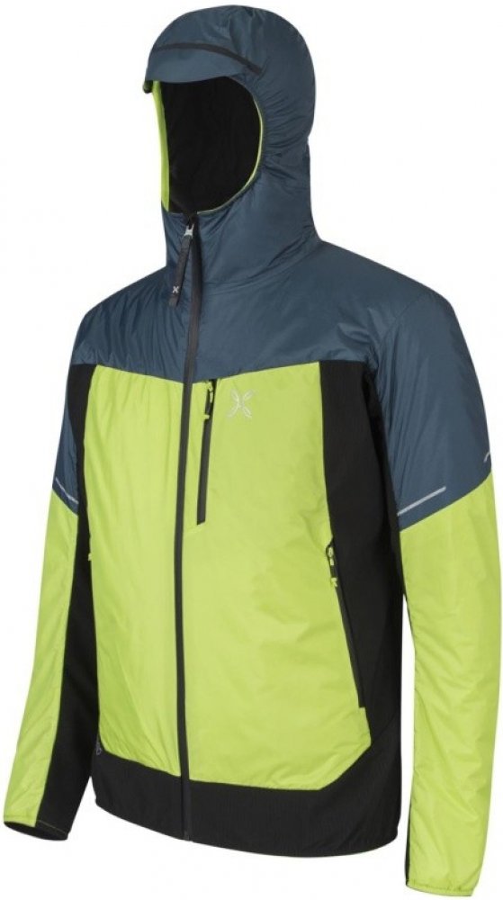 pánská částečně zateplená bunda s kapucí 2vrstvý nylonový materiál s úpravou DWR a membránou 15K / 15K kontrastní detaily záda ze strečového polyesterového materiálu s hybridní dvojitou, vysokou loftovou konstrukcí a úpravou DWR částečná nylonová podšívka 100g ultralehké polyesterové syntetické polstrování Comfortemp® 60 g ultralehkého polyesterového polstrování Comfortemp® ze sekundární syntetiky centrální zip vpředu, kapsy na ruce a náprsní kapsa na zip elastická kapuce, manžety a lem ideální bunda na skialpinismus, horolezectví a outdoorové sporty