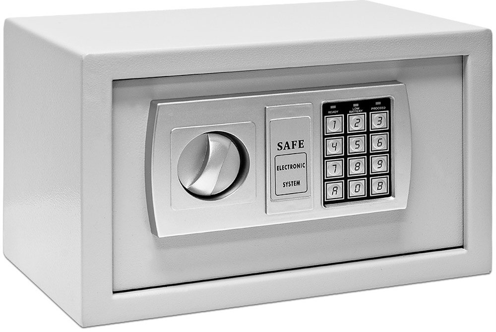 Sejf s oceľovým dvierkami s hrúbkou 3,2 mm sa ideálne hodí na privátne účely alebo do úradu. Dva oceľové čapy (dvojité uzavretie) trezoru poskytujú bezpečné uzavretie oceľových dvierok. Jednoducho si naprogramujete elektronický zámok pomocou vášho osobného kódu. A ak by sa vám niekedy stalo, že ste prístupový kód zabudli, sú vám k dispozícii 2 kľúče na núdzové otváranie.