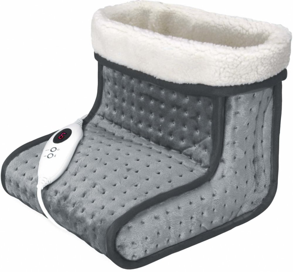 Super měkký, pohodlný ohřívač nohou – pro chladné zimní večery! Flaušový ohřívač nohou s časovačem do 90 minut má digitální displej a lze jej nastavit na 6 různých teplotních stupňů. Kvalitní zpracování, příjemný, měkký materiál poskytují nohám blaho. Ohřívač nohou má velmi efektivní vyhřívání: rozehřeje se okamžitě a teplo rozdělí rovnoměrně po celé pantoflí. Automatické vypínání a ochrana před přehřátím zajistí potřebnou bezpečnost. Vnitřek lze pohodlně vyjmout a vyprat při 30°C. Teplé, měkké, příjemné - vhodné až do velikosti chodidla 47! Přednosti produktu: flaušový ohřívač nohou s časovačem do 90 minut digitální signalizace regulace tepla na 6 různých teplotních stupňů kvalitní zpracování efektivní vyhřívání automatické vypínání a ochrana před přehřátím vnitřní podšívka se dá vyprat při 30°C Technické údaje: rozměry: 31 x 25 x 27 cm vnější materiál: 32% polyuretan, 68% polyester vnitřní materiál (podšívka): 32% polyuretan, 68% polyester výkon: 100 W Max. velikost boty: 47 délka kabelu: cca 2 m barva: bílo-šedá Obsah zásilky: 1 x ohřívač nohou návod k obsluze
