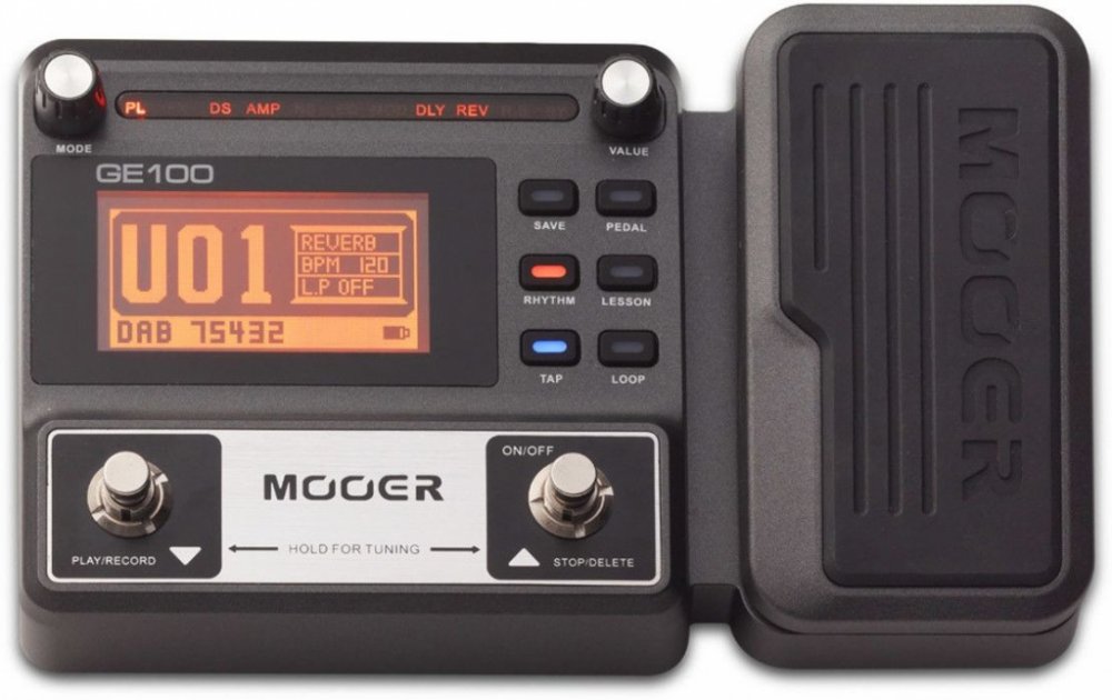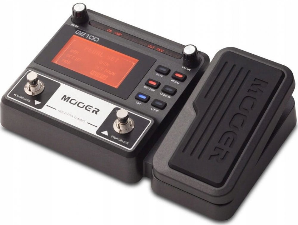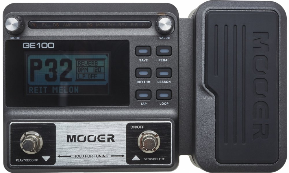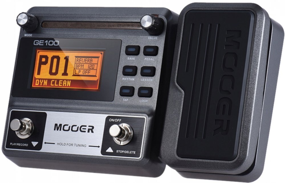 MOOER GE 100 Pedálový multi efekt pro elektrickou kytaru. 8 efektových bank: FX, Distortion, Amp, Equalizer, Modulation, Delay, Reverb a 66 typů efektů. 23 drive efektů se 7 legendárními simulacemi kytarových aparátů. 80 přednastavených a 80 uživatelských presetů, 40 rytmů bubenické automatu, 10 typů metronomu. Expression pedal, 2x footswitch pro přepínání presetů, zapnutí ladičky nebo ovládání Lo...